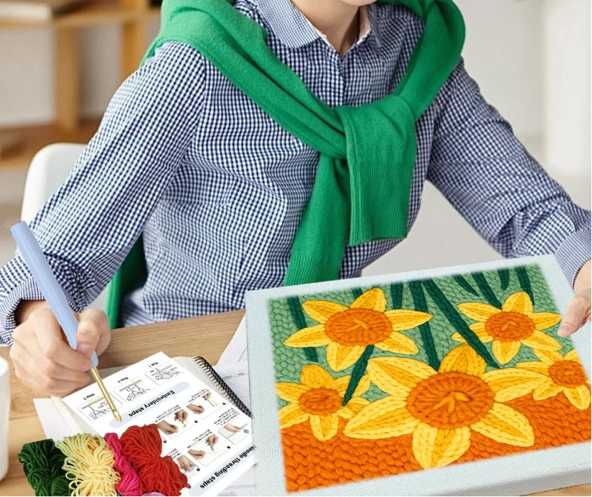 C’est un kit complet pour créer des œuvres textiles en relief. Il contient des aiguilles spéciales, des fils de qualité, un canevas et des modèles pour réaliser vos créations facilement.
